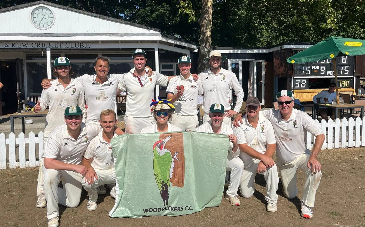 The Woodpeckers awoke to a cloudless Sunday in London town with a hotly anticipated fixture against Kew Cricket Club on the cards. Upon arrival, you’d have been forgiven for thinking we were playing in Karachi rather than South West London, such was the dustbowl outfield at Kew CC. A well prepared wicket and hard and fast outfield would prove influential throughout the game as value for well struck shots was high.