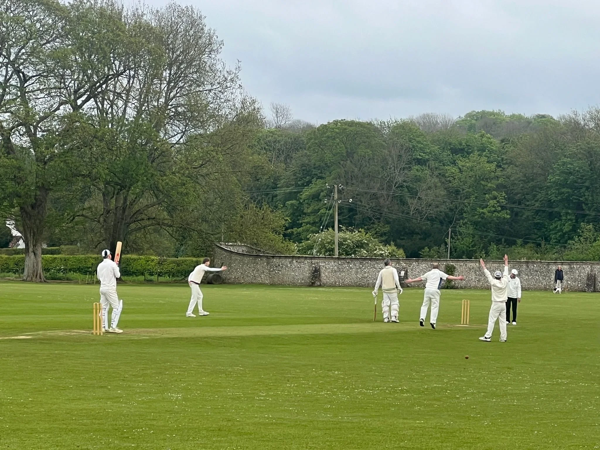 The Peckers got off to a good start, with Pob testing the early season fitness of Spinach (2-36) and Motty (1-27) with a 10 over opening spell for each of them. With 5 maidens between them they kept it tight and reduced the home side to 45-3 and, with the drizzle set in nicely at this point, it felt like the Peckers were well positioned to capitalise on this early dominance.