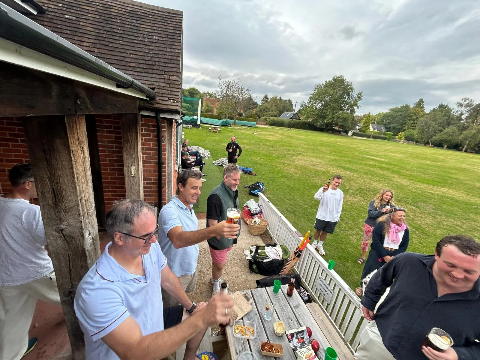Despite historical BBQ extravaganzas at this charming ground, it was a BOYT situation, meaning the Peckers had to get creative. Despite a limited amount of home baked goods, the combination of the Pavillion bar and quantity of food kept us going. Yours truly had found the cheese he had meant to take to Lords at the back of the fridge 2 weeks prior and more importantly POB generously brought a tipple more associated with the Hampshire Hogs fixture, Port. It was very apt that, a season that had started with a glorious toooooor of Porto should see the last fixture played in the season* to include this delicious fortified wine. Celebrating both old and new faces, we took to the field well fed and very, very well oiled.